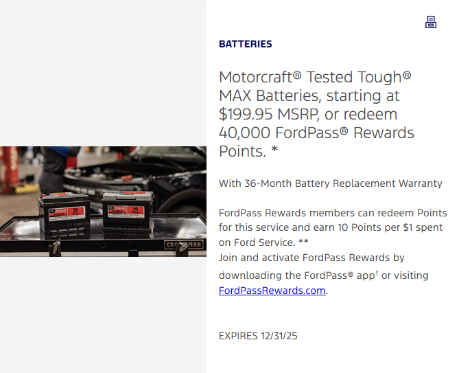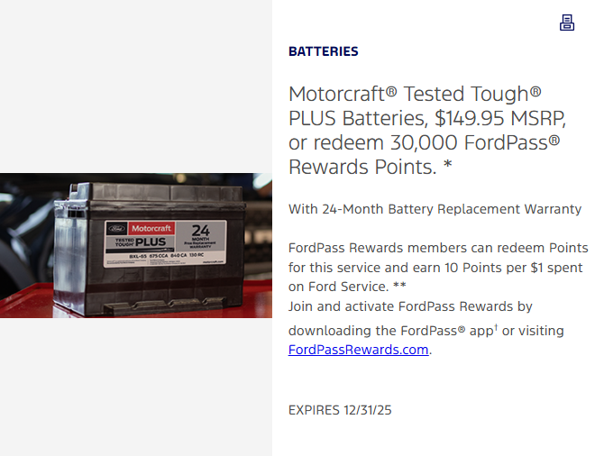 Ford Service Coupon provides attractive discounts on battery services, including battery replacements, to ensure that your Ford remains in peak condition at all times.